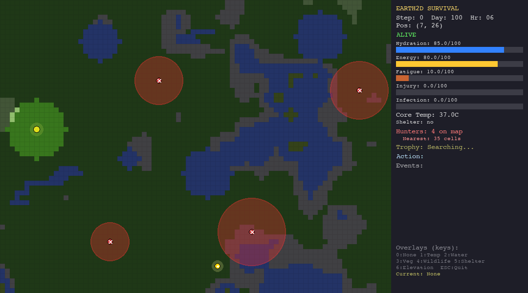 That is the core idea behind Earth-33: a 2D survival simulation where agents: LLMs, hand-crafted heuristics, and bio-inspired swarm algorithms, are dropped into procedurally generated worlds and evaluated on a single, unforgiving metric: how long can you stay alive?